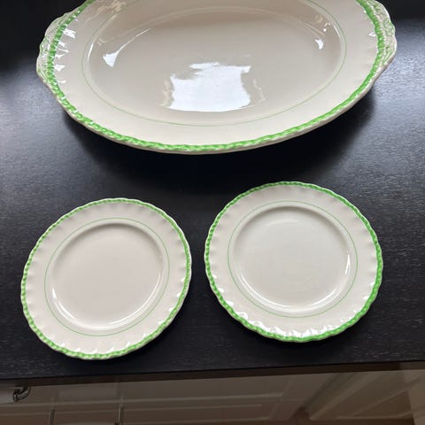 Vintage Grindley England porcelæn – samt Grindley cremapetal med grønt kant, ret fint,
