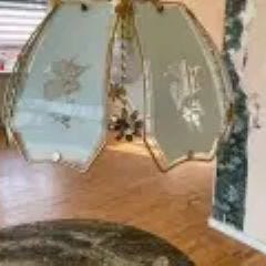 Loftlampe D. Ca. 35 cm. Bemalet gul glasskærm