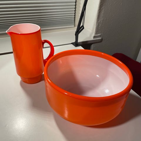 2 gule Holmegaard skåle af Michael Bang. Den store 11 h og 17 ø.