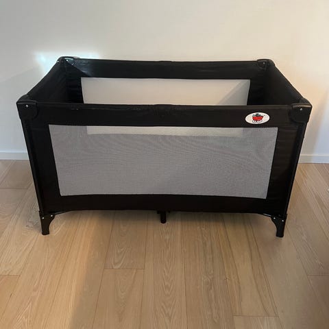 Rejseseng mærket Safety. Der følger madras med. Mål på sengen er: højde 75 cm, længde 120 cm og bredde 62 cm. Sælges for 220 kr. under halv pris. Henv. 30205899