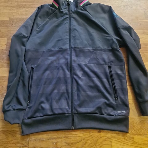 Adidas M træningsjakke i grøn farve. Jakken er designet til mænd i størrelse M og har klassiske hvide striber på ærmerne. Materialet og detaljer er ikke specificeret, men jakken er velegnet til sport og fritid. Den er i rigtig god stand og kan hentes tæt ved Amager Strand