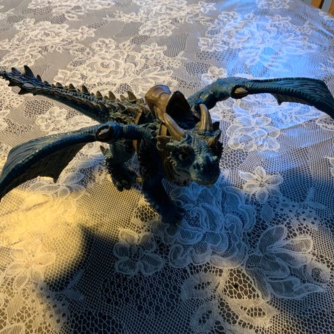 Schleig flot grøn dragefigur med udstrakte vinger, detaljeret skulptur med tekstureret krop og hale.