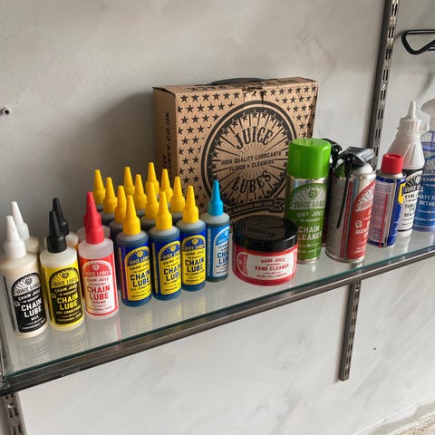 Team Sky sæt med cykelolie og smøremidler, indeholder tør olie, våd olie og kædevoks i forskellige flasker samt en olieflaske med applikator. Produktet er beregnet til vedligeholdelse af cykler.