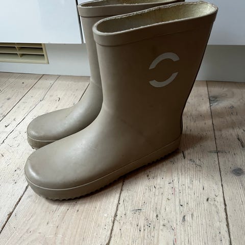 Mikk-Line børne gummistøvler i størrelse 34, designet til piger. Støvlerne er rosa med et blomsterprint og har en slidstærk gummisål. Materialet er vandtæt, hvilket gør dem velegnede til brug i våde og mudrede forhold.