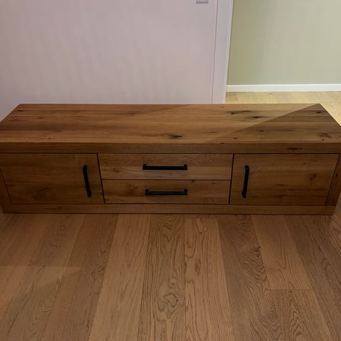 Eksklusivt TV-bord / bænk i massiv eg – håndværk med karakter