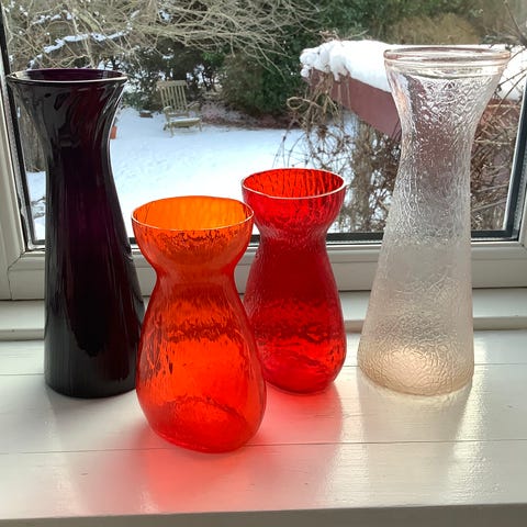Holmegaard hyacint vaser i klart glas, sælges samlet. Mærkat mangler på den ene.