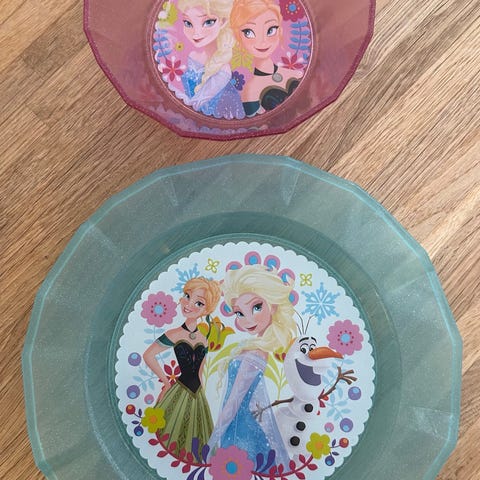 Disney Frozen / Frost børneservice sæt bestående af en kop, en tallerken og en skål.