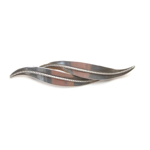 En flot sølv broche i skønvirke stil stemplet 830S AG. Designeren hedder Børge Alexis Godtbergsen fra København og var aktiv fra 1940 - 1987. Brochen måler 56 mm lang og fremstår med almindelig brugs spor.