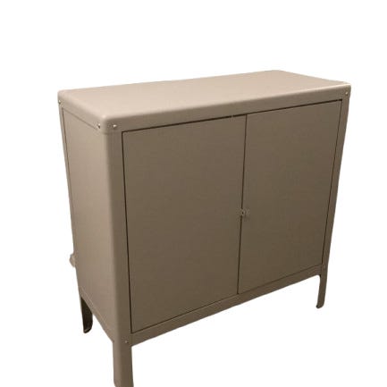 IKEA BOLLEBYGD væghængt skab i metal med buet top og to hylder. Skabet har en låge der kan lukkes, og er velegnet til opbevaring af småting. Designet til montering på væggen og fremstillet i holdbart materiale. Aldrig brugt, men som vist på foto lidt patina. Der er stadig film på lågen. Måler B: 25 cm, H: 36 cm og D: 12 cm. Udgået model.