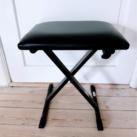 Næsten ny sammenklappelig keyboard bænk i farven sort med lækker tyk siddepude,justerbar højde, brugt få gange Fra røgfrit hjem uden husdyr sælges billigt