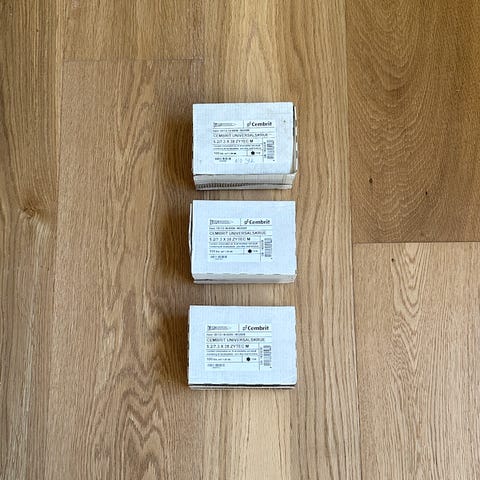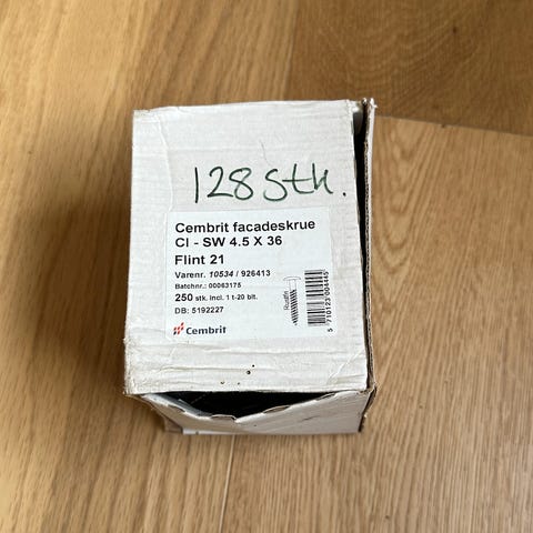 Skruer til Cembrit facade plader lys grå T033. SCR-S 4.8x29 A2 WASHER 0,7-1,5mm. Farve T030. Skruerne er med TX20, og der skal forbores med 8mm bor. Skruerne bruges til montering af facade plader og vindspærreplader. Indhold ca. 250stk + 1stk TX20 bit.
