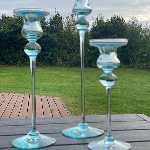 Holmegaard Glas Lysestager Blå Højde 23 cm