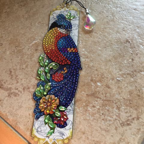 Guldfarvet bogmærke med vedhæng af en cupcake med små perler på.