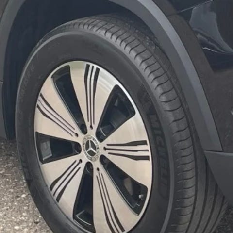 Sad på en mercedes EQE SUV4matic ved levering. Eagle, F1, MO. 4 dæk uden fælge.