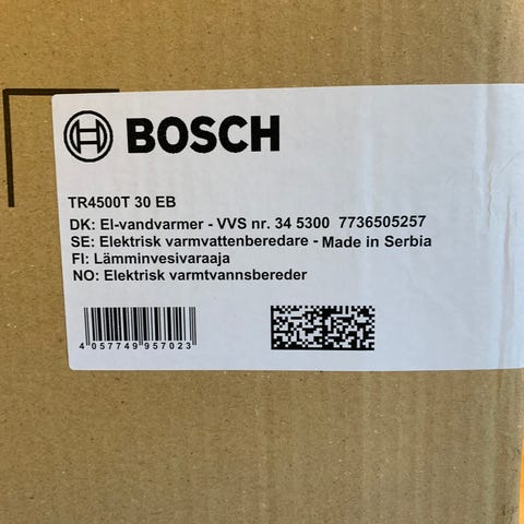 Bosch Tronic Advanced AquaStop TR7000R Gennemstrømningsvandvarmer. 400V 3 ~ 27 kW. Produktet har AquaStop-funktion for sikkerhed mod vandskader. Designet til installation i hjemmet med en maksimal driftstryk på 1 MPa (10 bar).