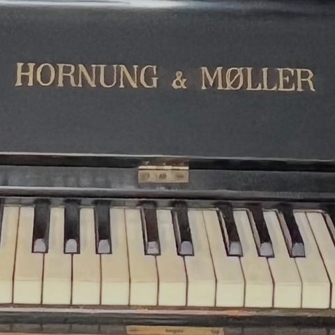 Ca. 100 år gammelt Høning & Møller klaver. Flot klang og holder stemning utroligt godt.