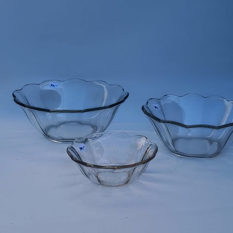 Kagefad i presset glas fra Holmegaard Glasværk. Pressemønster Samsø med glat bund.