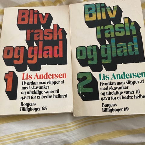 Lia Andersen Bliv rask og glad 1 og 2 er to bøger med orange omslag. Bøgerne indeholder information om helbred, velvære og livsstilsændringer. Teksten er på dansk, og bøgerne er velegnede til læsere, der ønsker at forstå metoder til at forbedre deres helbred og trivsel. 17.1