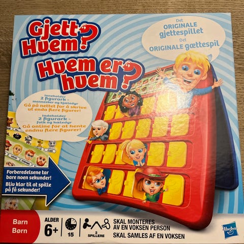 Introducer børnene til klassikeren Hvem er hvem? spillet, i en ny opdateret udgave fra Hasbro Games. Stil spørgsmål, find særlige træk, og gæt den hemmelige person! Dette brætspil er velegnet til to personer, der hver trækker et kort med en mystisk karakter. Ved på skift at stille hinanden ja- og nej-spørgsmål, vil de så forsøge at finde ud af, hvilken mystisk karakter modstanderen har trukket. Spillet har 2 karaktertavler med låger til at placere de karakterbilleder, som spillerne bruger som udgangspunkt, når de stiller deres spørgsmål.