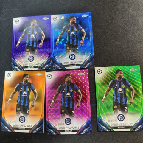 Topps Chrome UEFA Champions League Jeremy Doku fodboldkort i blå farve. Kortet er nummereret 042/150 og viser Jeremy Doku i Manchester Citys hjemmebaneuniform.
