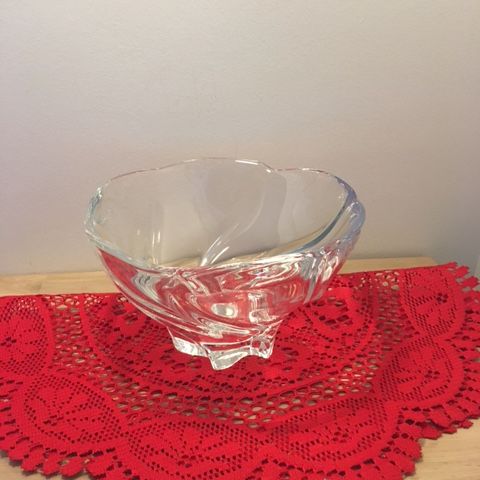 Smuk kraftig stor glas skål designet af Allan Scharff for Holmegaard 2001. 21 cm i diameter og ca. 13 cm høj. Vejer over 2 kg. Krystal skål med stjerneformet bund. Lavet med centrifugeringsteknik