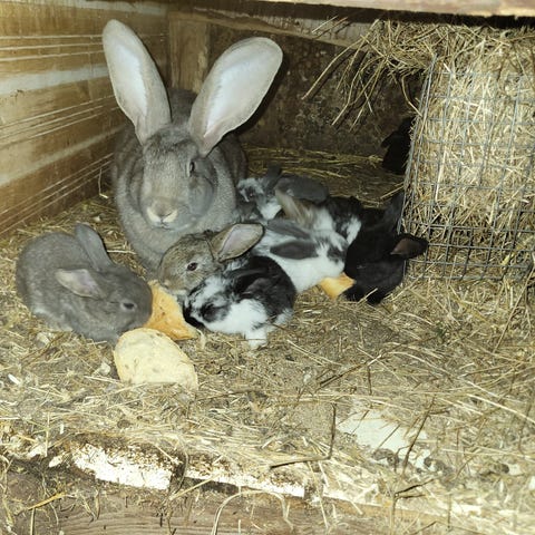 Mor og far ses på billede 3 (far er belgisk kæmpe og mor er fransk vædder)
