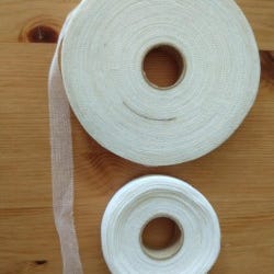 Opkøbt fra lukket tricotagefabrik -et ægte vintagebånd. Virkelig mange meter hvidt skråtklippet bånd, bomuld, 16 mm bredt. Det er hvidt nok på "fladerne", men da det har ligget i nogle år, er det lidt nusset på over- & undersiden af selve rullen. Det er en god fast kvalitet. Jeg har flere syartikler til salg & sender på købers regning.