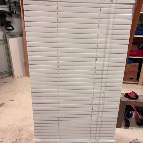 JYSK blinds 130 cm wide x 160 cm high. Made of aluminum and in the color gray. Has been used, still in excellent condition.