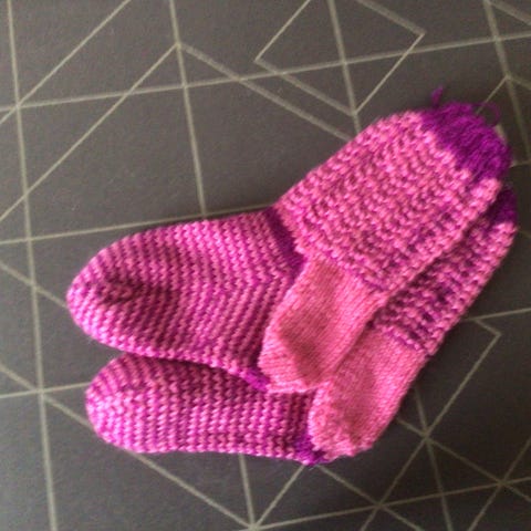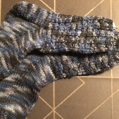 Hjemmestrikkede sokker af 75 % uld og 25 % nylon.