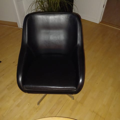 Pæne, velholdte læder drejestole i læder og en elegant, slank drejesokkel i børstet stål, sælges. Men.: Bolig.