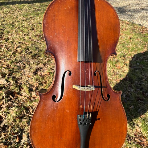 Rigtig fin begynder cello str 1/4. Fin lyd. Massivt dæk. Har været spillet på i 3 år så spillet lidt til og klinger godt. (Strengeimstrumebter bliver bedre jo mere de spilles på og træet vibreres. )