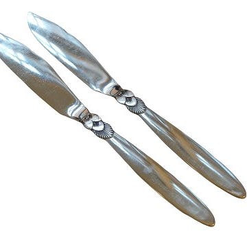 Georg Jensen Kaktus sterling sølv og rustfrit stål, frokostkniv med langt knivblad.