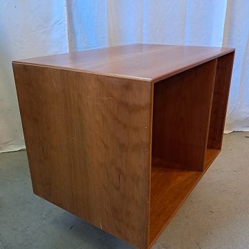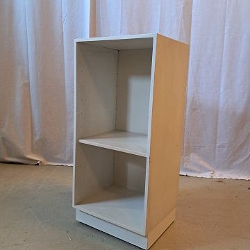 Den har brugsspor og defekter nederst på reolen.