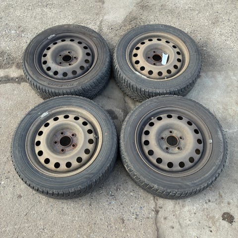 4 stk. 205/60T16 stålfælger med TPMS ventil passer til Hyundai Kona 2018. De har kørt en enkelt sæson og er næsten som nye. Mønsteret er 7 millimeter dybt.