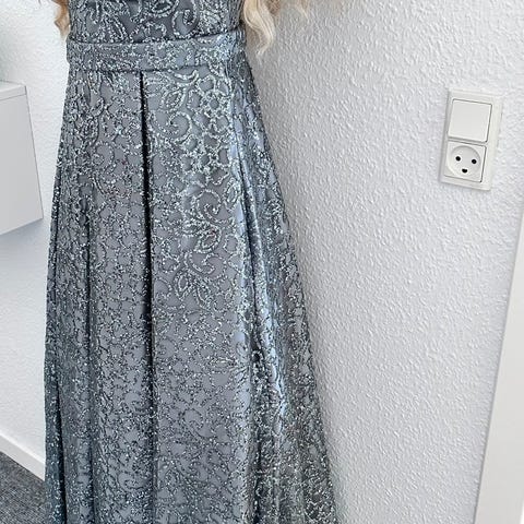 Utrolig flot lang festkjole i en eksklusiv satinlignende kvalitet.