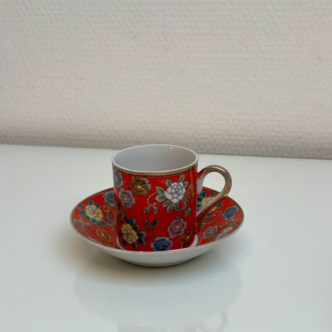 Porcelæn, espressokopper, S.I.C.A, Meget smukt grønt mokkastel, aldrig brugt. Fremstår som nyt. Fin lille kaffekande og fløde kande og 5 kopper, perfekt til espresso.