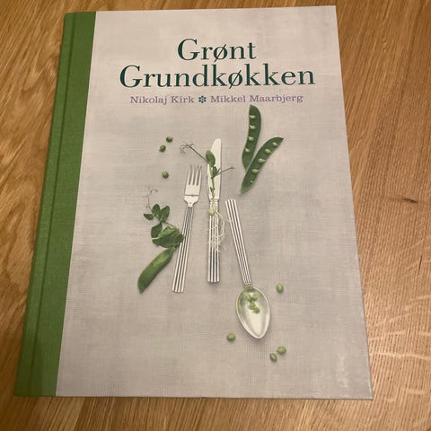 Grønt Grundkøkken, Nikolaj Kirk og Mikkel Maarbjerg, emne: mad og vin, Stand: bladret i og ellers som ny, 9/10