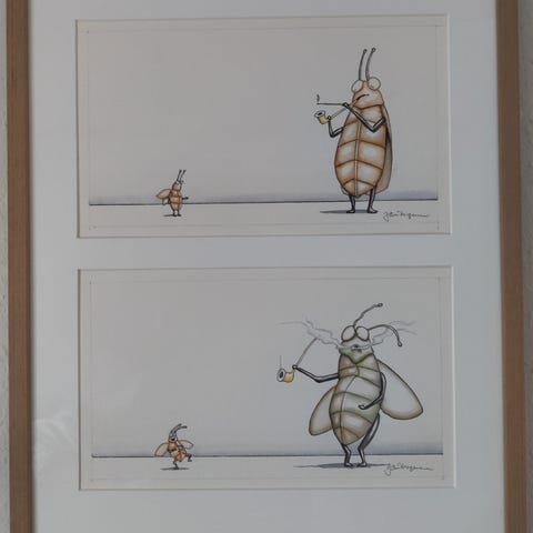 Indrammet med passepartout. Unikke originaler fra den kendte børnebogs illustrator købt i forbindelse med Bogforum 2018 på Bruun Rasmussen. En mulighed for en helt unik indretning af børneværelset med originalkunst som der kan synges til.