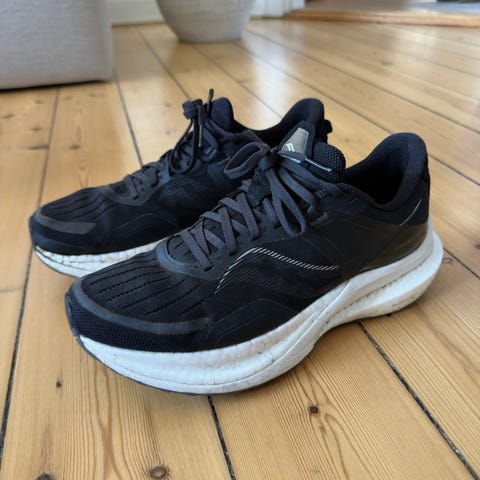 Løbesko, desværre købt for små, så kun været ude under 5 km. Nypris 1600,-