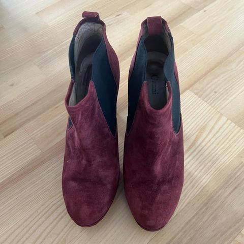 Her tilbydes et par elegante sorte ruskinds støvletter fra Ganni, str 41.