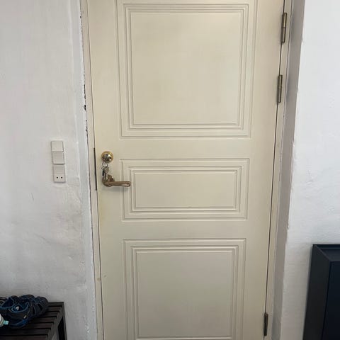 Vi har ikke håndværkersnilde, så I skal selv tage dør+karm ud og hente dem. Kan gøres i uge 13.