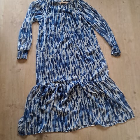 Smuk kjole. Flotte detaljer, smuk krave og ærmer, let behageligt stof. Størrelse Xl, skal sidde løst.