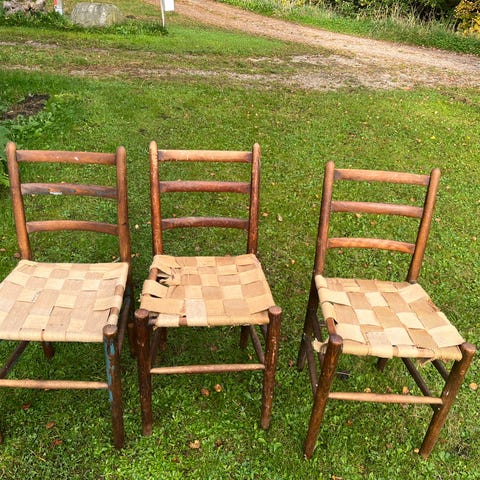 5 Arne Jacobsen Novo spisebordsstole. Ud af de 5 stole mangler 3 af dem flet. De 2 resterende stole har flet i søgræs. Kan ses/afhentes i Roskilde efter aftale.