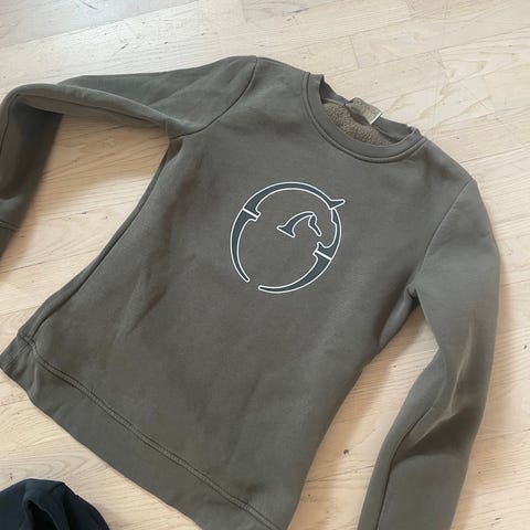 Med hætte (skjult i krave), ingen brugsspor, mærker eller andet og fuldstændig som ny.