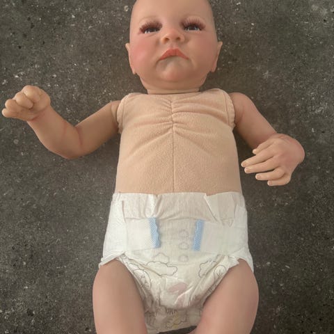 Reborn Baby Born dukke med blødt tøj i hvid farve og tilbehør som sut. Dukken er designet til børn og kan bruges til leg og stimulering af fantasi. Reborn