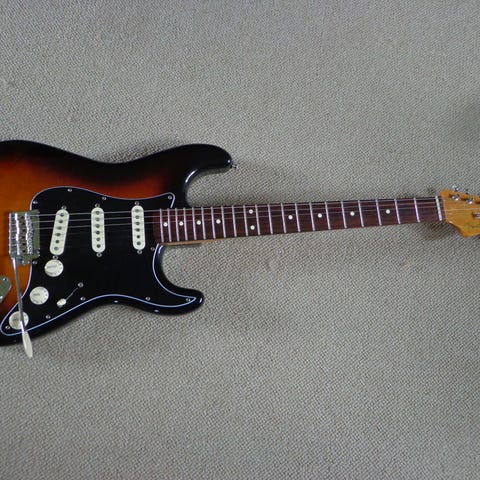 10: Stratocaster, måske Tokai (svær at identificere med sikkerhed). Massiv krop. Vintage Fender US hardcase.