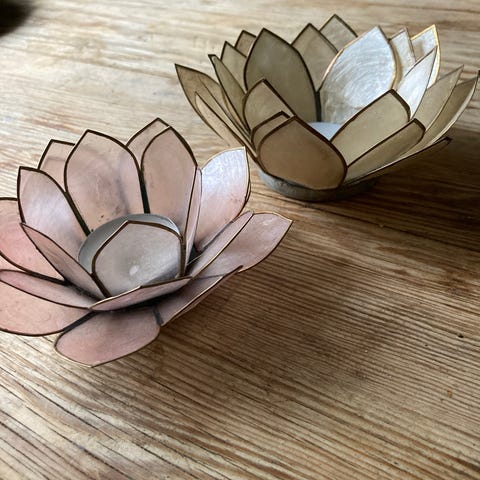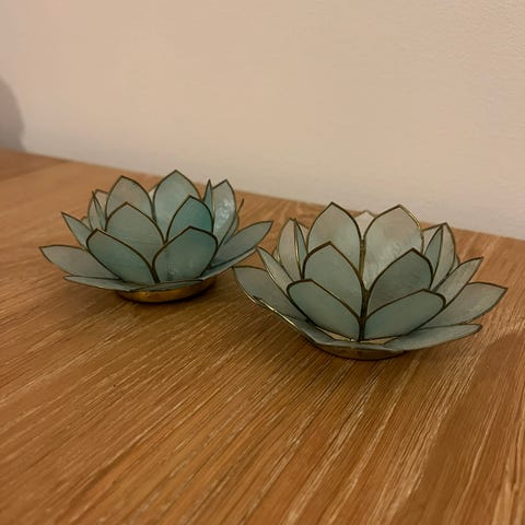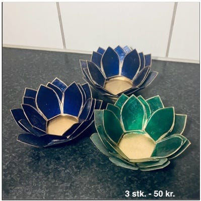 4 forskellige lotus lysestager, købt på blandt andet godkarmashop, hvor de koster 139 kr. stk.