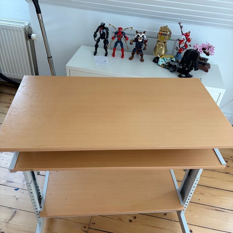 Træbord med hylder i lyst træ