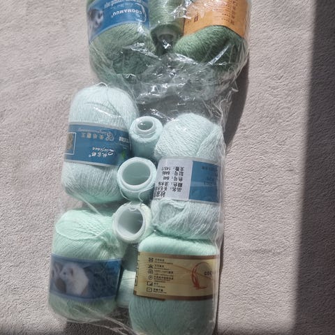 Uld eller anden varm art garn håndstrikket tøj i blå farve. Materialet er nok uld, og tøjet er håndstrikket. Passer til forskellige formål afhængigt af størrelse og design.