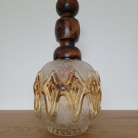 Flot retro loftlampe med frostet glas og perlepynt for neden.